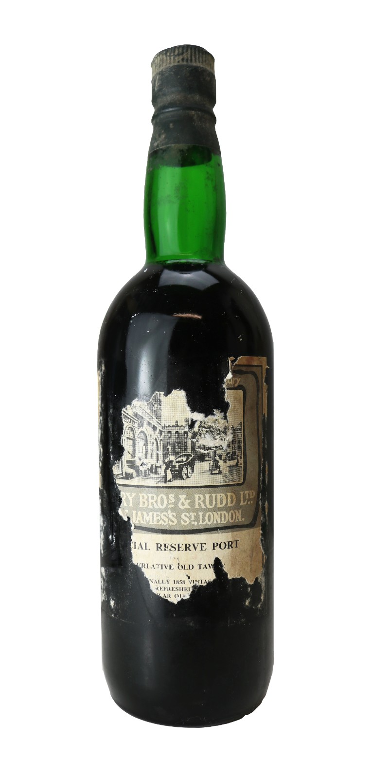 Label is incomplete. This bottle is an enigma as we are unable to find similar bottles. The labels says 1858 vintage and below this it says refreshed. Our assumption is that the base is 1858 blended with another year. We have contacted BBR to enquire about the origins of this wine.