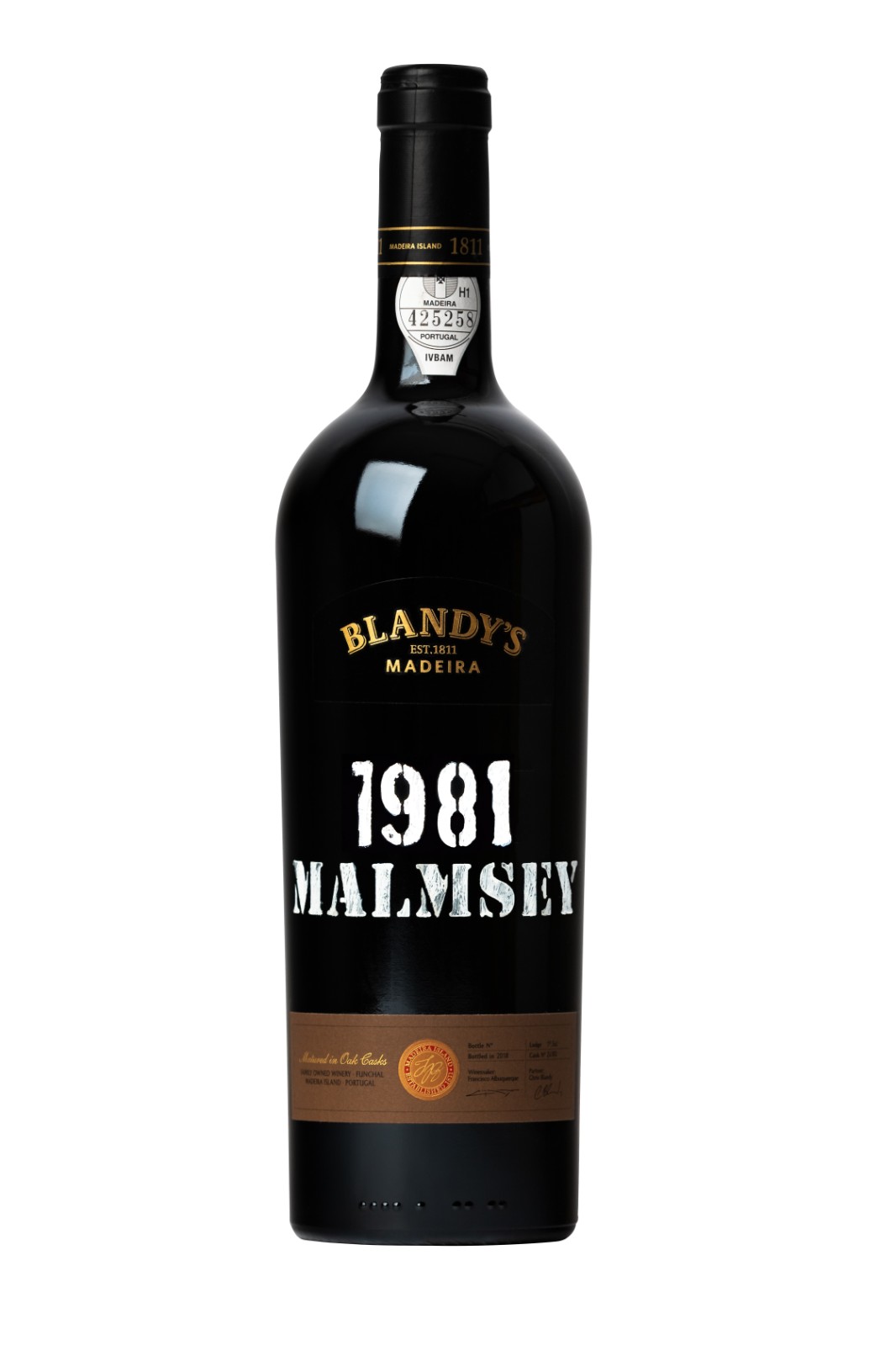 This exceptional 1981 Malmsey Madeira from Blandy's displays a deep amber hue with green reflections, crystalline and bright. The nose is exuberant, featuring a characteristic bouquet of exotic wood, toasted confectionery, candied fruits, spices, and subtle smoked notes. On the palate, it is sweet, smooth, and dense, with good concentration and excellent freshness. The experience culminates in a long aftertaste of brandy, spices, and honey.