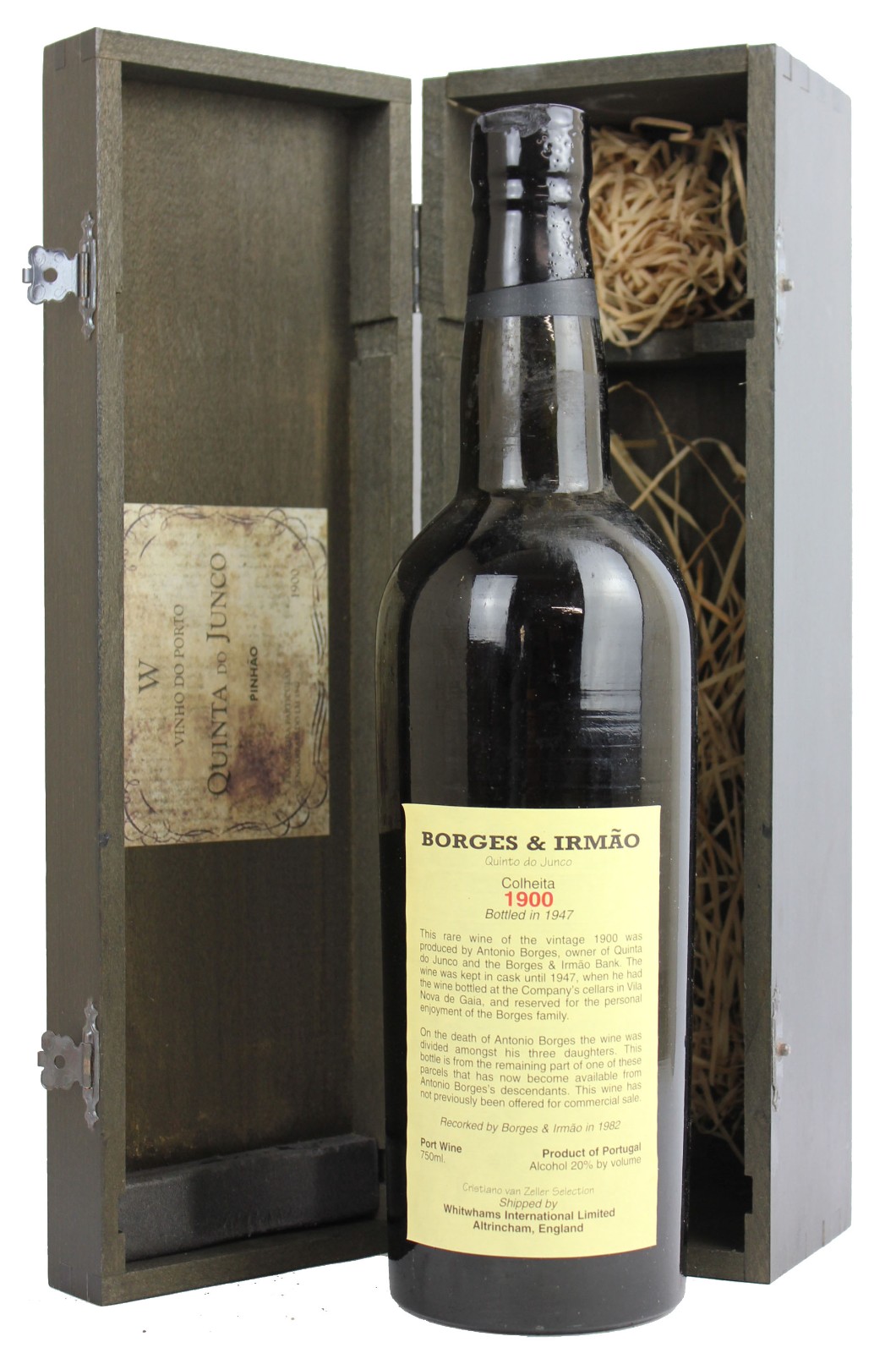 Founded in 1884 by the brothers António and Francisco, the Sociedade dos Vinhos Borges – previously known as Borges & Irmão – soon became one of Portugal’s leading wine companies. This is an extremely rare bottle of vintage Port from 1900, bottled in 1947 and recorked in 1982. A piece of wine history and valuable collector’s item.
