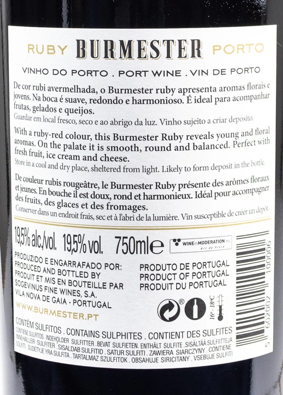 It can be appreciated as an aperitive or on any other ocasion. Ideal accompaniment to nuts, cheeses or deserts.