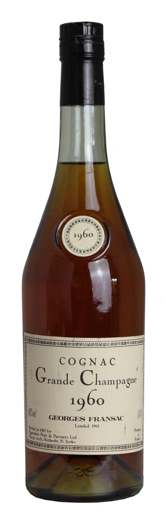 Cognac Georges Fransac, 1960 Georges Fransac Grande Champagne Cognac Description and Reviews: 70cl 40% landed 1961 bottled 1982. Condition Report: excellent Bottle size: 75cl ABV: Drink Type: Cognac, Cognac Stock: Out of Stock Price: £325.00 inc UK VAT (where applicable) * Upgrade this item with a Luxury Gift Package Gold Cardboard Presentation Box - £4.45 Single bottle cardboard presentation box. Includes tasting notes and a personal message (can be input in the Personal Gift Message Box at the basket stage).***Please note this product is manufactured to fit a 75cl bottle (50cl and 37.5cl bottles can also be packaged inside this box). Out of Stock Single Bottle Natural Wooden Box with Sliding Lid - £7.95 Sliding lid wooden gift box with straw lining. Includes tasting notes and a personal message (can be input in the Personal Gift Message Box at the basket stage).***Please note this product is manufactured to fit a 75cl bottle (50cl and 37.5cl bottles can also be packaged inside this box). Out of Stock Deluxe Gift box with Accessories - £14.95 Send your wine in a beautiful silk-lined gift Box with an accessories set inlaid into the lid. Includes: Corkscrew; Wine Pourer; Thermometer and Wine Stopper. Includes tasting notes and a personal message (can be input in the Personal Gift Message Box at the basket stage).***Please note this product is manufactured to fit a 75cl bottle (50cl and 37.5cl bottles can also be packaged inside this box). Out of Stock