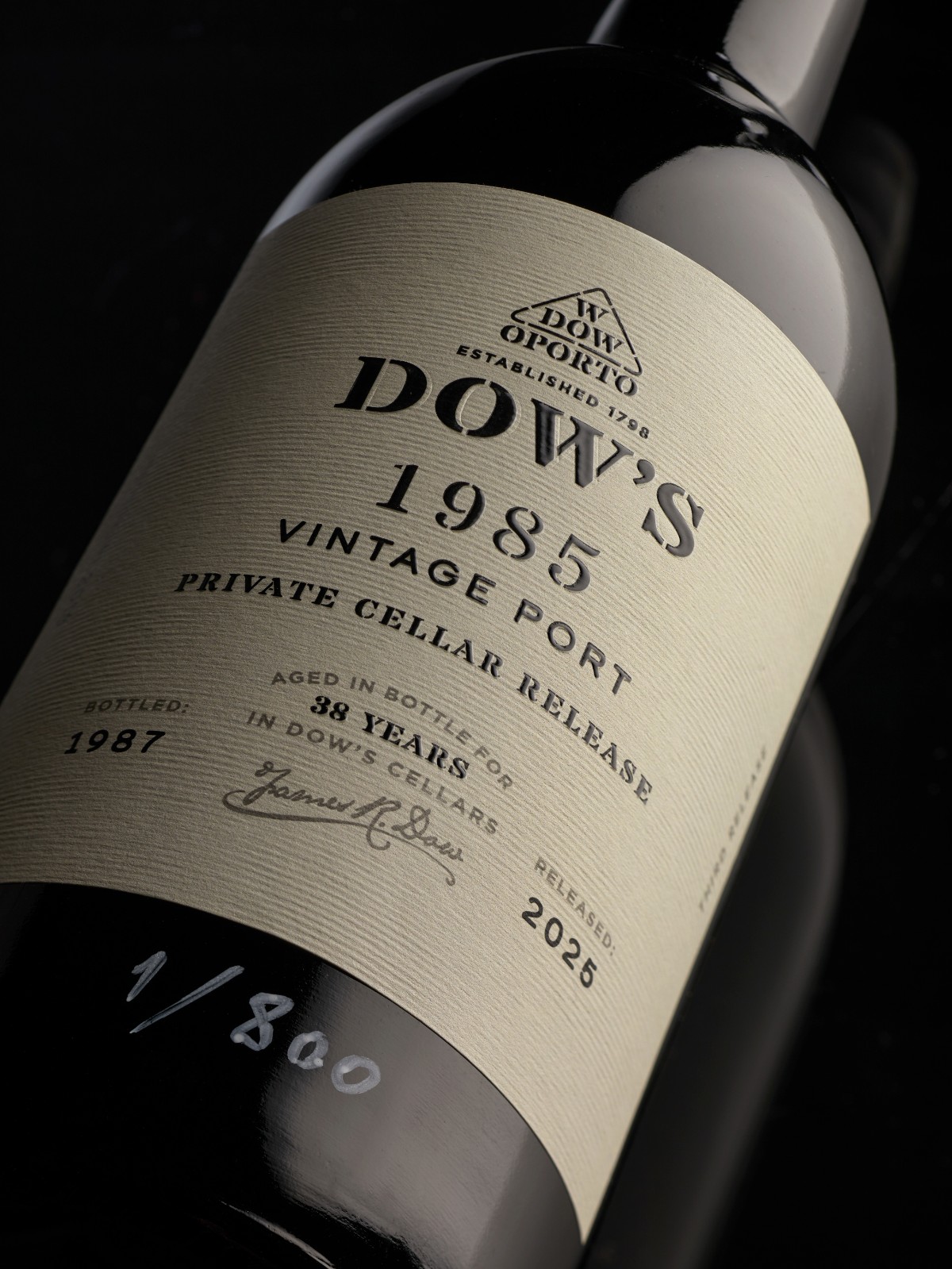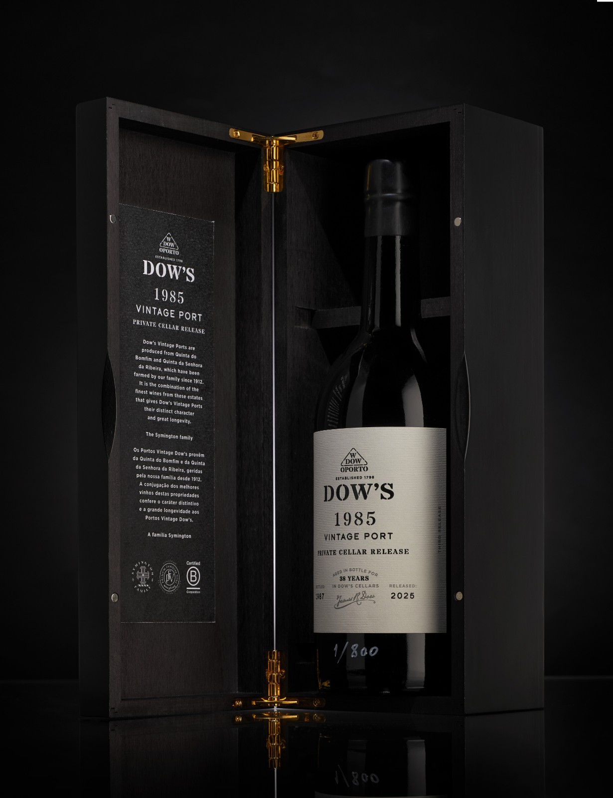 The Symington family have taken the decision to release, probably for the last time, a small quantity of the last remaining stock of Dow’s 1985 Vintage Port, to share with fine wine lovers and enthusiasts this superb, perfectly matured wine. To mark this special release, the bottles have been given unique labels and individually etched with their bottle number.