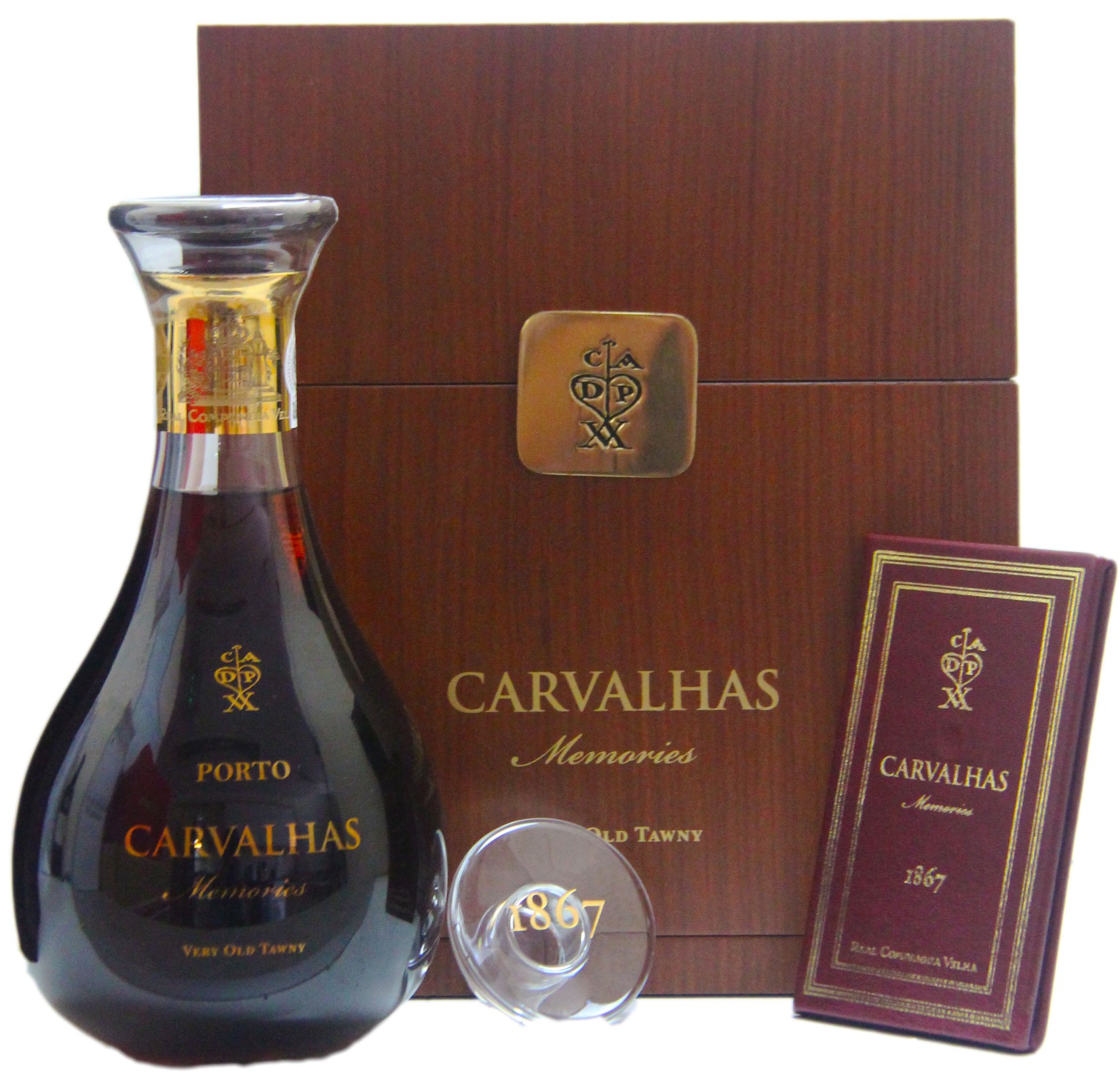 Exquisitely presented in a crystal decanter and an artisanal case, the Quinta das Carvalhas "Memories" very, very old tawny port is made from the exceptional 1867 tawny with a dash (7%) of 1900.