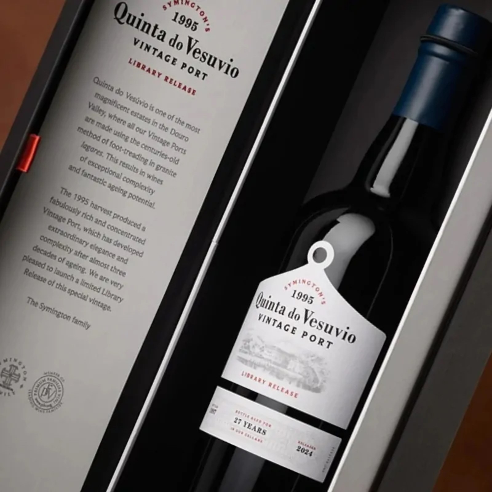 This Library Release of Quinta do Vesúvio 1995 Vintage Port was only the seventh harvest for the family since their acquisition of the magnificent Douro estate in 1989. Peter Symington, Head Winemaker at the time, is particularly proud of this wine and believes it is one of the finest he made in the early years of the family’s ownership. 1995 also marks the year his son, Charles (now Head Winemaker) joined the family company.