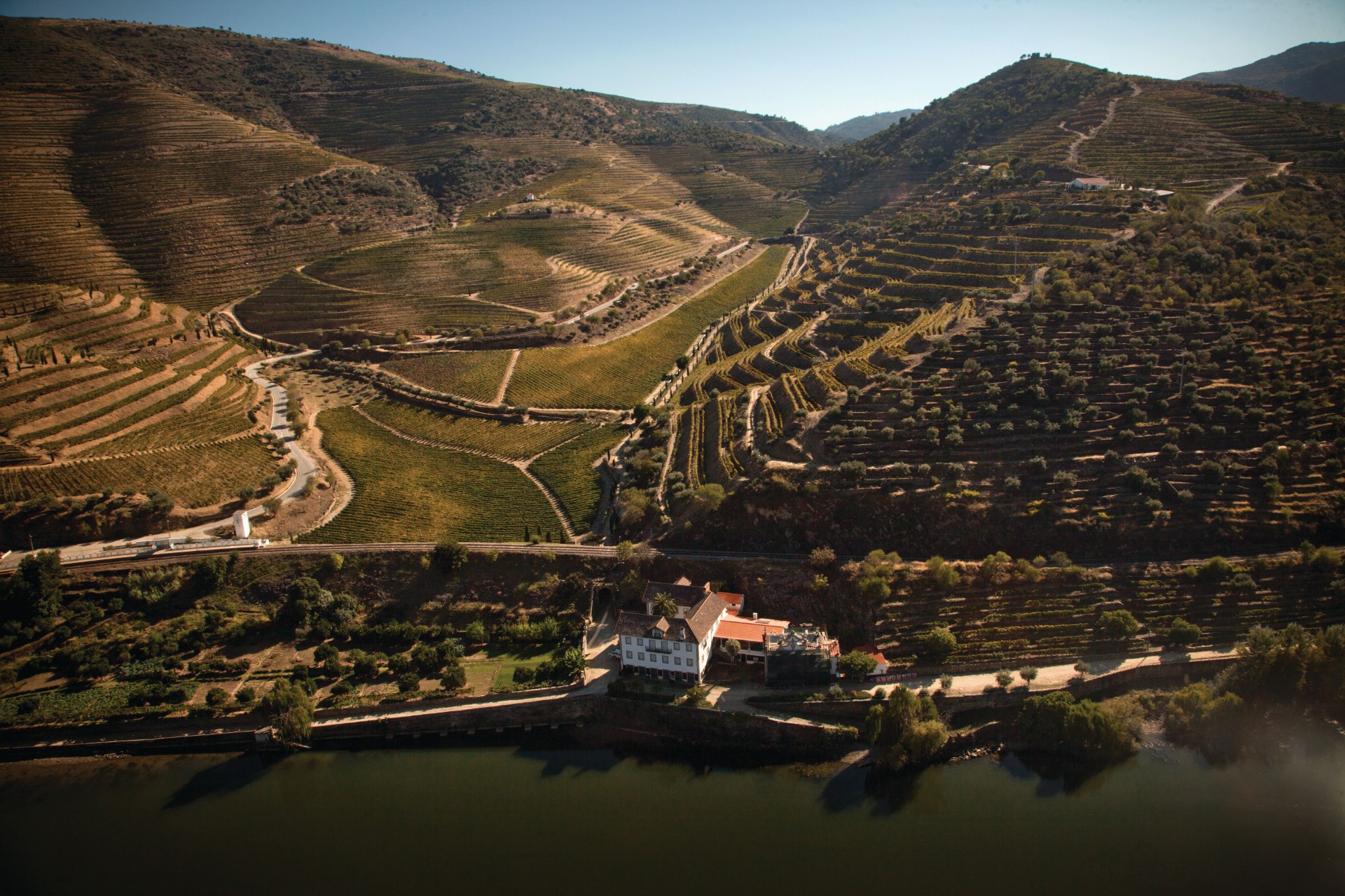 Quinta do Vesúvio is located in the Douro Superior, the demarcated region’s hottest and driest sub- region with just 470 mm average annual rainfall. The property’s sheer size (326 hectares) and mountainous terrain result in varied aspects, predominantly north and northwest, as it occupies a south bank position along the Douro River.
