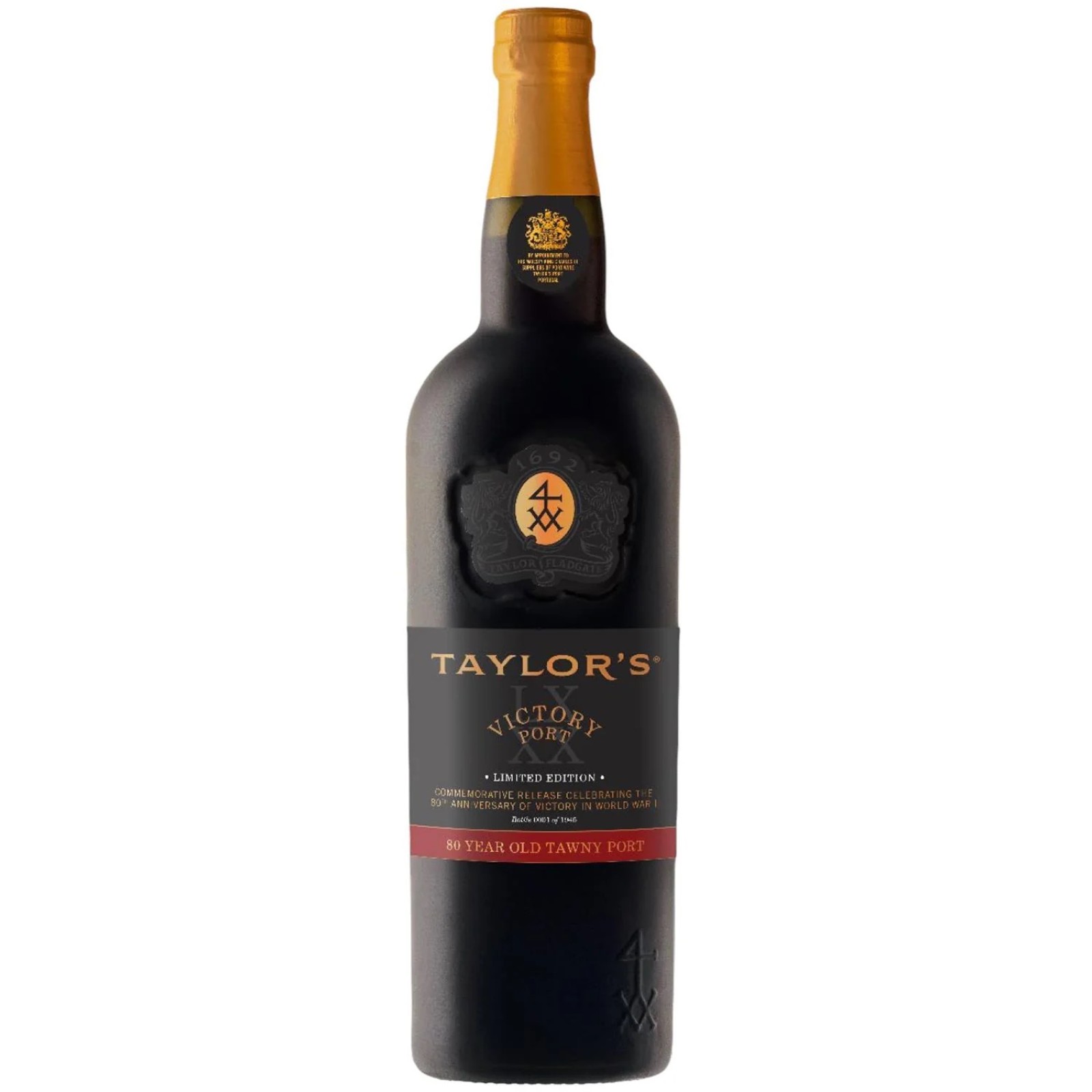 An extraordinary testament to eight decades of ageing, Taylor’s Victory Port is a very rare Tawny Port of exceptional quality, matured in hand-made seasoned oak casks. This limited edition is a celebration of Taylor’s unparalleled expertise in the craftmanship of fine Ports and a tribute to the 80th anniversary of victory in the Second World War. To create this exclusive release, Taylor’s has drawn upon its extensive stocks of very old cask aged Ports, carefully preserved in its historic cellars in Oporto. Amongst these reserves lies a small treasury of unique and historically significant port wines. Only in the rarest of circumstances are these jewels released and for the Victory Port, Taylor’s expert blenders have meticulously hand selected a few of these remarkable vintages. The individual component wines were then masterfully blended, using Taylor’s centuries of experience, creating a harmonious symphony of flavours and aromas. This blend was married together over several months, nurtured and watched over until it reached its peak of balance, elegance and perfection.